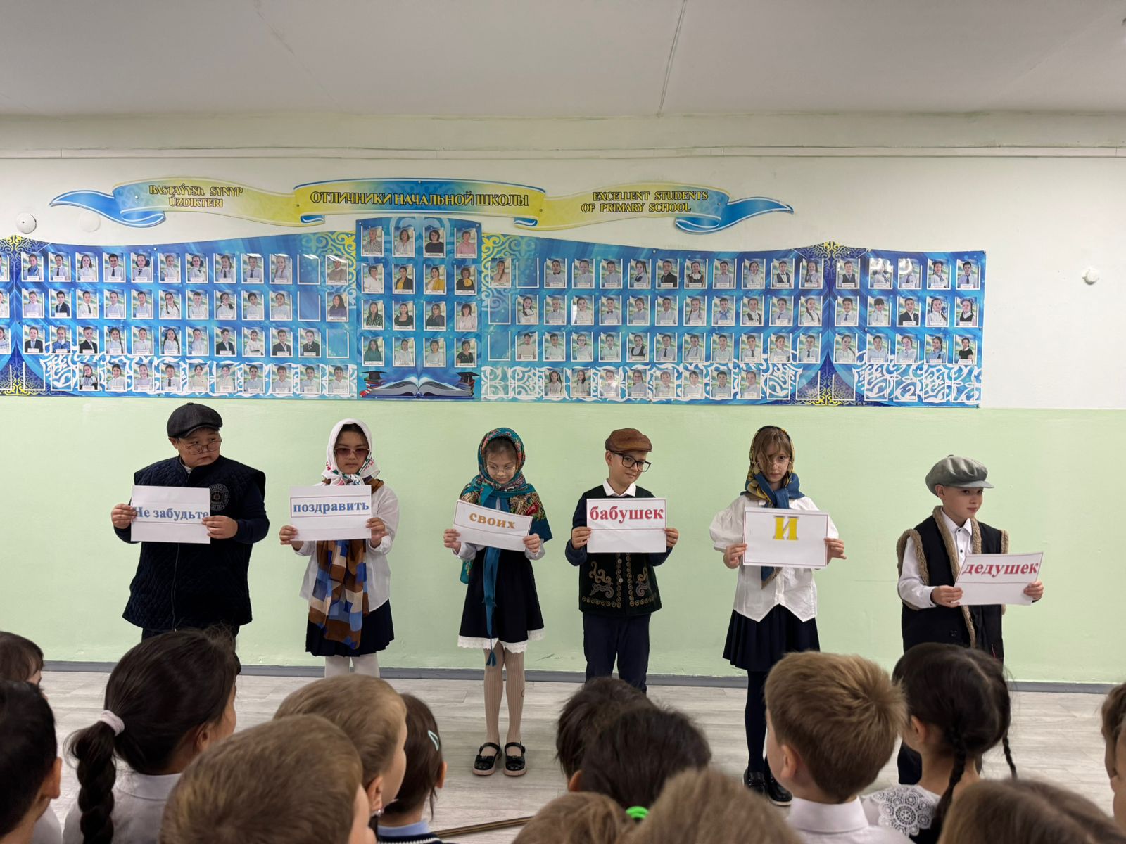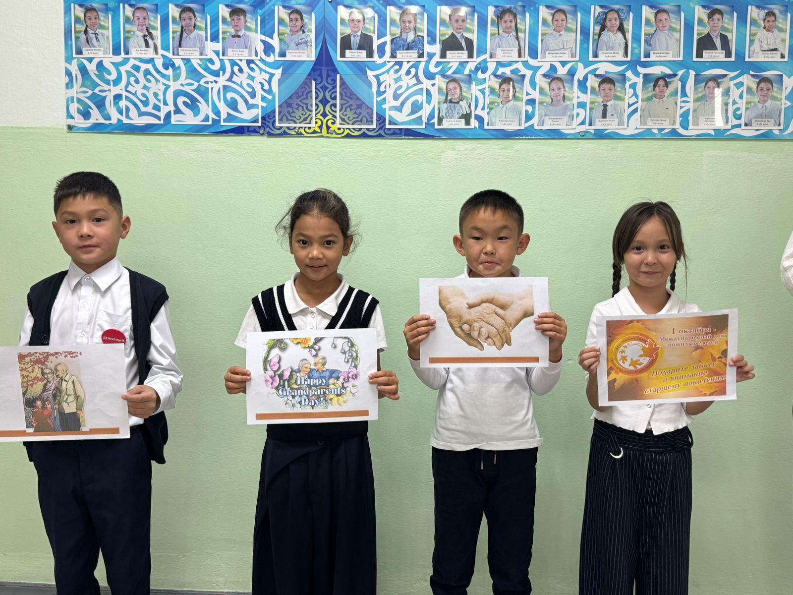 Бүгін мектебімізде Қарттар күніне арналған тақырыптық сызық өтті.